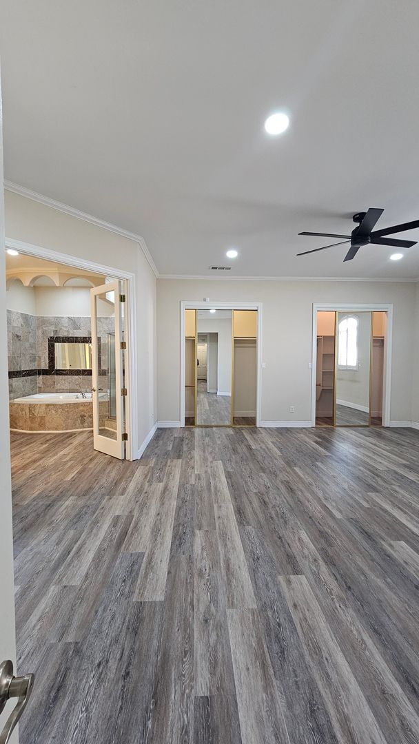 Retreat to the spacious primary suite, designed for relaxation with a luxurious spa-style bathroom featuring a large soaking tub, separate glass shower, and elegant tile finishes. Additional bedrooms and bathrooms provide plenty of space for family, guests, or a home office.